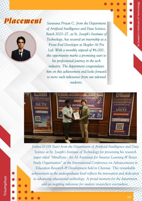 Science at St. Joseph’s Institute of Technology for presenting his research
