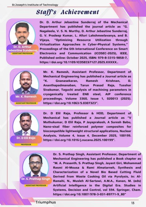 Dr. D. Arthur Jebastine Sunderraj of the Mechanical