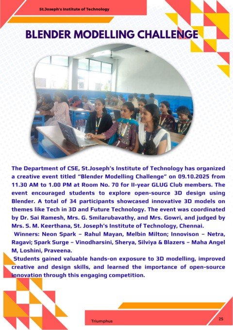 The Department of CSE, St.Joseph’s Institute of Technology has organized
