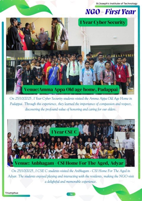 O n 25/10/2025, I Year Cyber Security students visited the Amma Appa Old Age Home in