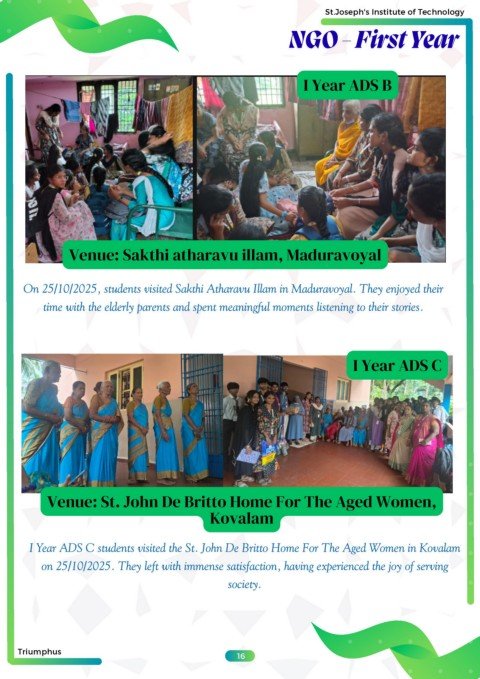 I Year ADS C students visited the St. John De Britto Home For The Aged Women in Kovalam