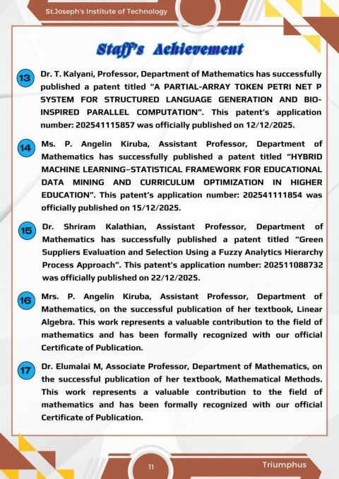 13 Dr. T. Kalyani, Professor, Department of Mathematics has successfully