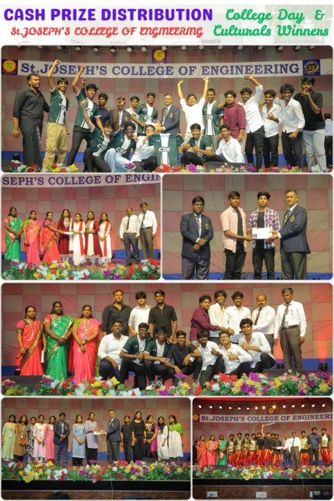 CASH PRIZE DISTRIBUTION College Day & St.JOSEPH’S COLLEGE OF ENGINEERING Culturals Winners