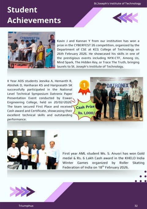 laurels to St. Joseph's Institute of Technology.