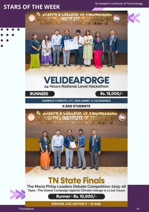 STARS OF THE WEEK St.Joseph's Institute of Technology Triumphus 41